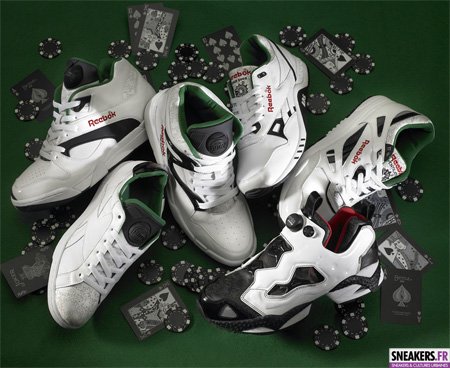 Reebok lance une collection inspirée par le jeu de cartes le plus à la mode : le poker. A l’effigie des cartes composant une quinte flush royale, ces 5 modèles seront disponibles à partir d’août. La fury est non disponible à la vente et vous sera offerte si vous achetez les 5 autres modèles de la collection.