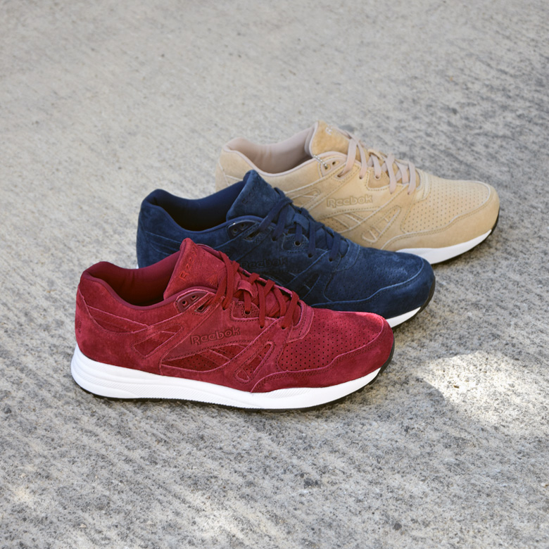 Pour la saison automne/hiver 2015, c’est un pack simple mais efficace qui est sorti. La Reebok Ventilator est déclinée dans des versions monochromes en cuir suédé perforé. Quatre coloris sont disponibles : bleu marine, bordeaux, beige et gris (qui n’apparait pas sur les photos).