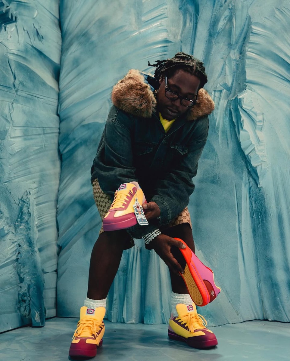 La Reebok x BBC Ice Cream Board Flip puise ses racines dans l’univers du skate mais s’empare de codes sneaker au sens large. La tige mêle des matériaux robustes : suède épais, cuir lisse et mesh technique. Le design présente un profil bas, mais une semelle oversize, rappelant les chaussures de skate des années 90. C’est une chaussure prête pour la pratique mais pensée pour le style. La nouvelle itération signée Don Toliver adopte un coloris jaune, mêlé à du bordeaux et du rose pâle. Elle est ornée d’une étiquette Don Toliver, ainsi que du célèbre logo BBC Ice Cream sur le quart arrière.