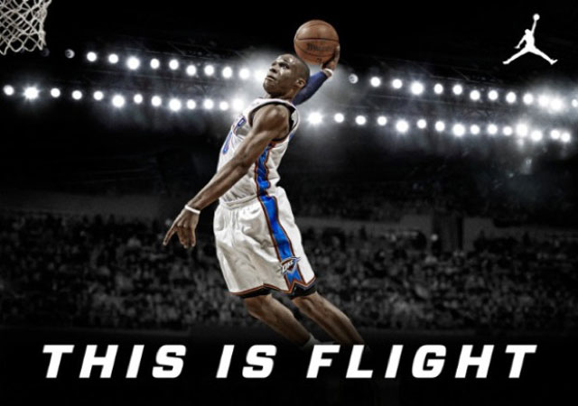 Après le départ de Dwyane Wade chez Li-Ning, Jordan Brand rebondit très rapidement en signant le meneur de jeu d’Oklahoma City Thunder : Russel Westbrook. Le double NBA All-Star a accepté un contrat de promotion sur plusieurs années avec la marque au jumpman. Mr. Explosive a rejoint la NBA et le Thunder, après deux saisons à UCLA où il a aidé à mener l’équipe des Bruins au Final Four du championnat NCAA 2010 lui offrant ainsi la récompense du joueur défensif de l’année de la conférence Pacifique. Ce natif de Los Angeles est un meneur de jeu dynamique possédant des statistiques remarquables avec une moyenne de 23,6 points par match (5ième meilleur scoreur de la ligue), 5,5 passes décisives et 4,6 rebonds lors de la saison régulière 2011/2012. Michael Jordan a déclaré lors de la conférence de presse : « Le style de Russell, à la fois sur et hors du terrain, combiné à son amour et son dévouement envers le jeu font de lui un ajustement parfait pour Jordan Brand. Nous aimons le dynamisme et la passion pour le basket que Russell apporte. »