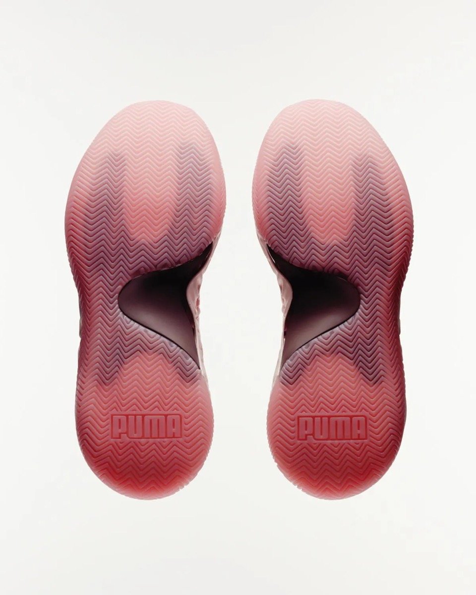 Avec la Puma Hali 1 Hibiscus, Puma offre à Tyrese Haliburton une chaussure qui colle parfaitement à son identité. Le meneur, reconnu pour son intelligence de jeu, son calme et sa créativité balle en main, trouve ici une sneaker qui incarne ces qualités. Fidèle à l’esthétique de Salehe Bembury, le design prend une direction biomorphique. La structure de la chaussure évoque les formes naturelles, presque organiques, d’une fleur tropicale. La tige en mesh technique, renforcée par des nervures en TPU, crée un effet de superposition évoquant des pétales. Cette approche sculpturale, signature du designer, s’accompagne d’un logo félin latéral subtilement intégré à la silhouette, semblant émerger du matériau lui-même. Des détails soigneusement placés viennent souligner l’héritage de la collaboration. Le motif d’empreinte digitale, cher à Bembury, est embossé sur la semelle intermédiaire. Le logo personnel de Haliburton apparaît sur la languette, ajoutant une touche personnelle et symbolique à l’ensemble. Le coloris Hibiscus, imaginé comme un camaïeu de roses allant du bordeaux au rose floral, apporte du contraste tout en rappelant la vivacité et la fraîcheur d’un printemps tropical.