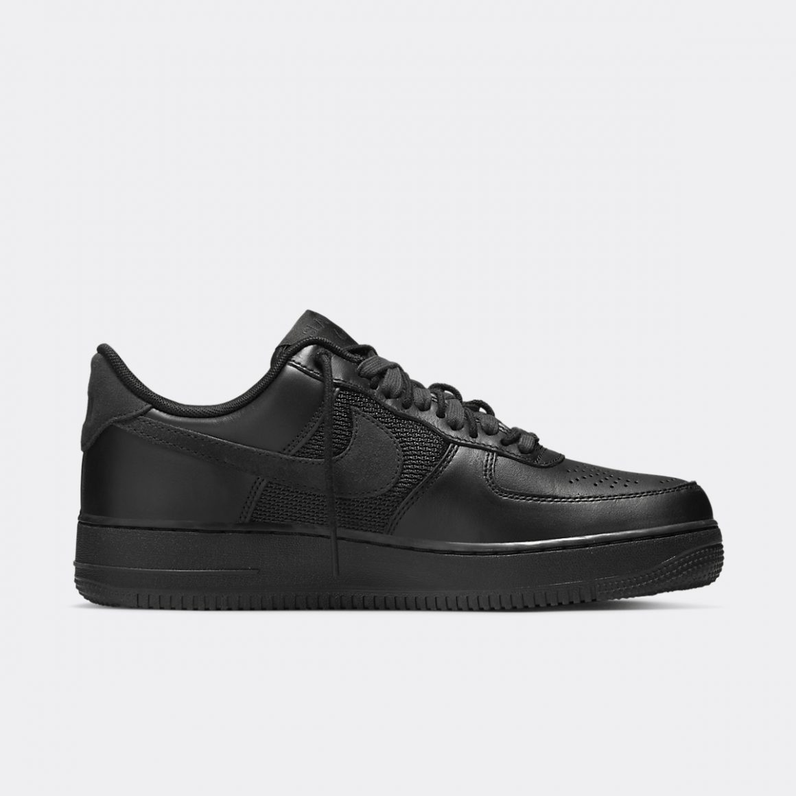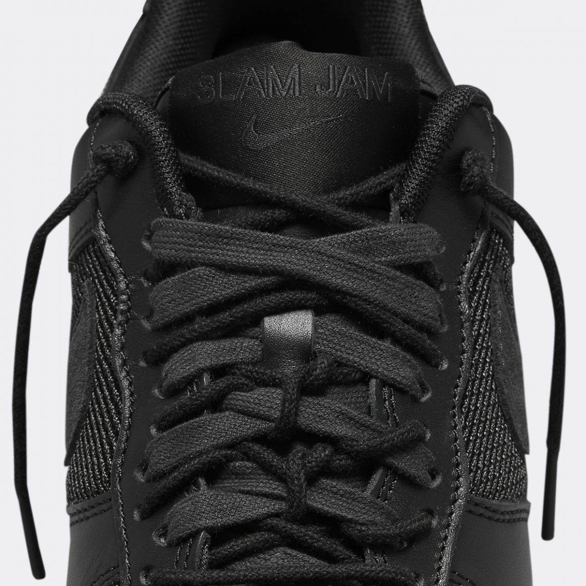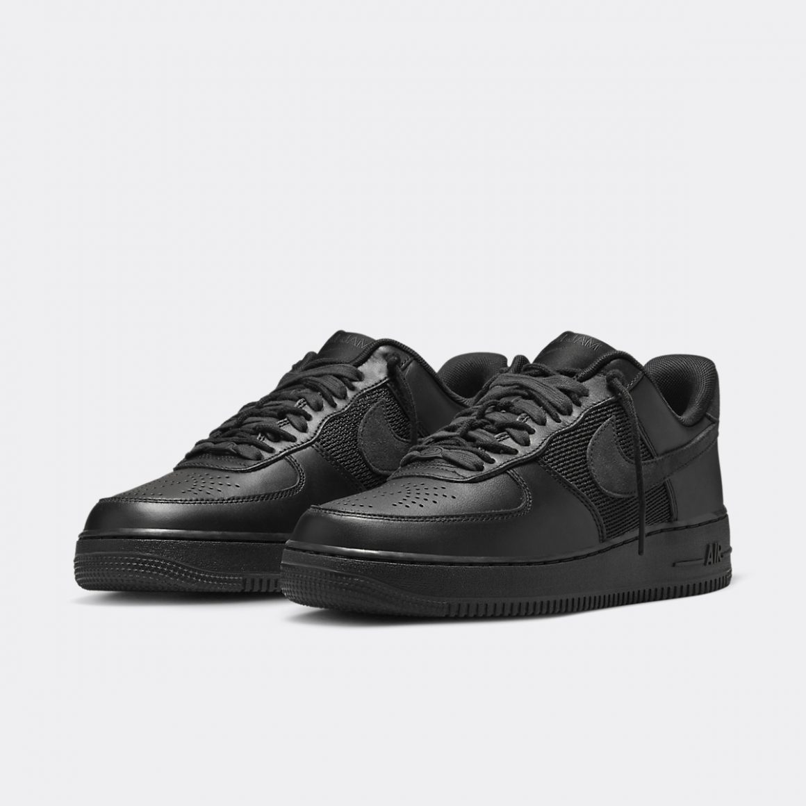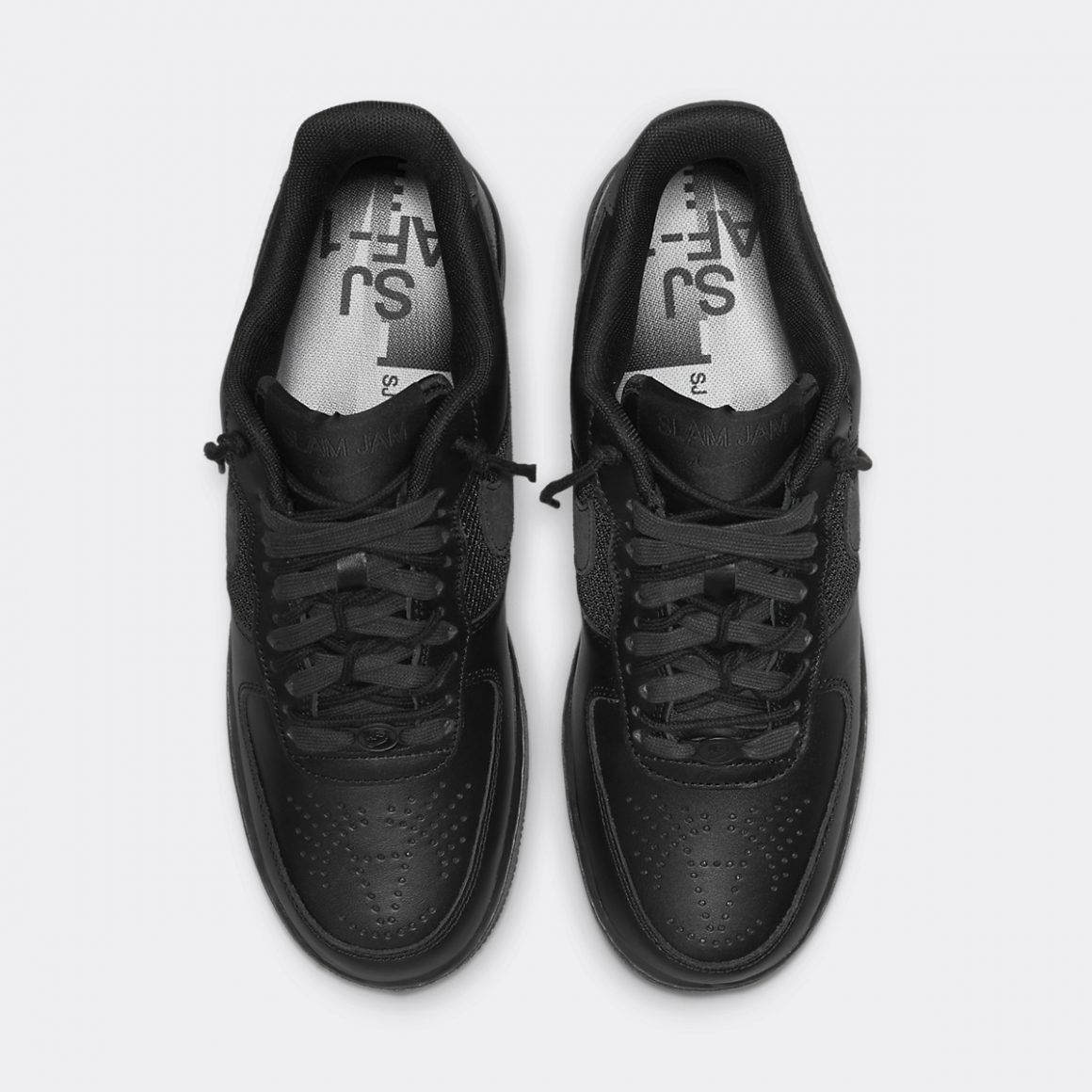 La Slam Jam x Nike Air Force 1 Low SP Black reprend la silhouette classique de Bruce Kilgore. L’empeigne est construite en cuir lisse noir, à l’exception des panneaux latéraux en mesh assorti. La toebox perforée dessine le logo de la boutique italienne et ajoute du caractère à la paire. La languette porte une étiquette brodée du nom de Slam Jam, surmontant un Swoosh ton sur ton. Cette languette porte des lacets doublés, composés d’une paire de lacets ronds et d’une paire de lacets plats. Les panneaux latéraux arborent un Swoosh en cuir suédé noir, qui s’accorde au heeltab en matière et en ton. Il est gaufré d’un Nike Air à l’envers, marquant la touche de Slam Jam sur ce modèle iconique. La paire repose sur une semelle intermédiaire noire et une semelle extérieure assortie, finalisant un design monochrome et plein de détails.