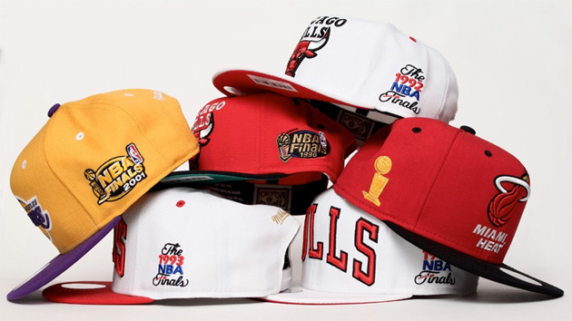 Les finales NBA démarreront ce soir entre le Miami Heat et les San Antonio Spurs. Mitchell&Ness profite de cette période de Playoffs pour rééditer des casquettes des finales légendaires. Quatre snapbacks sont dédiées aux titres des Chicago Bulls de Michael Jordan en 1991, 1992, 1993, leur premier Three-Peat et une au titre de 1996. Une autre snapback est celle du titre du Miami Heat de Shaquille O’neal et Dwyane Wade en 2006. Enfin la dernière casquette est en hommage aux Lakers du Shaq et Kobe et leur titre de 2001. Chaque casquette snapback est aux couleurs de l’équipe concernée par la victoire, avec le logo des finales brodé sur le côté ainsi que le score inscrit à l’intérieur. Cette sélection est disponible sur notre shop en ligne.