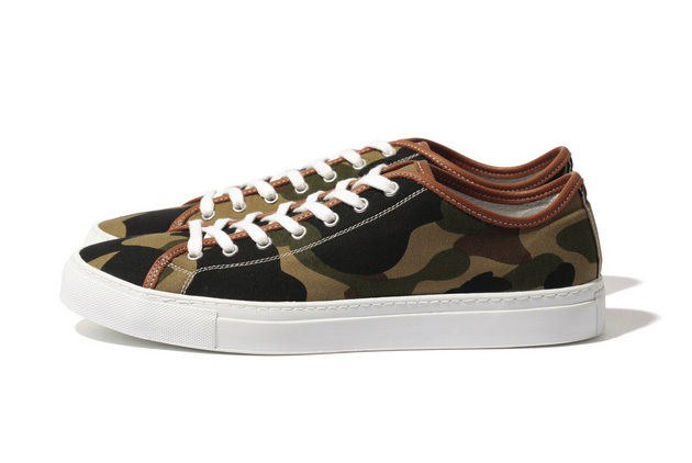 En lançant Mr. Bathing Ape en 2010, la marque japonaise attaquait un segment totalement différent. Chemises, costumes, cravates, souliers venaient garnir les collections Mr. Bathing Ape pour un vesitaire plus habillé. Une paire de sneakers voit le jour pour cet automne avec un design extrêmement sobre : semelle vulcanisée, toile camouflage (le fameux camo Bape) et quelques finitions en cuir marron. Le modèle est très réussi mais, comme tous les produits de Mr. Bathing Ape, le tarif est assez élevé, à savoir 27,300 Yen (à peu près 230€).