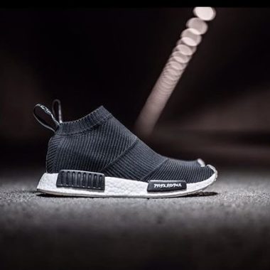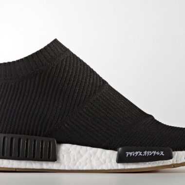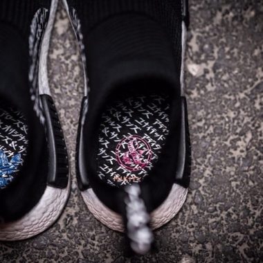 La paire possède une empeigne en Primeknit noir très sobre. L’originalité provient des différentes inscriptions écrites en japonais que l’on retrouve sur la partie intérieure du pied mais aussi la tirette au talon et enfin sur les plugs de la semelle intermédiaire. C’est l’artiste Japonais MIKITYPE qui s’est chargé de la réalisation de ces dernières. La sneaker est finie avec une semelle en BOOST blanc dont l’extérieur est en gum. Les sneakers seront accompagnées de deux survêtements.