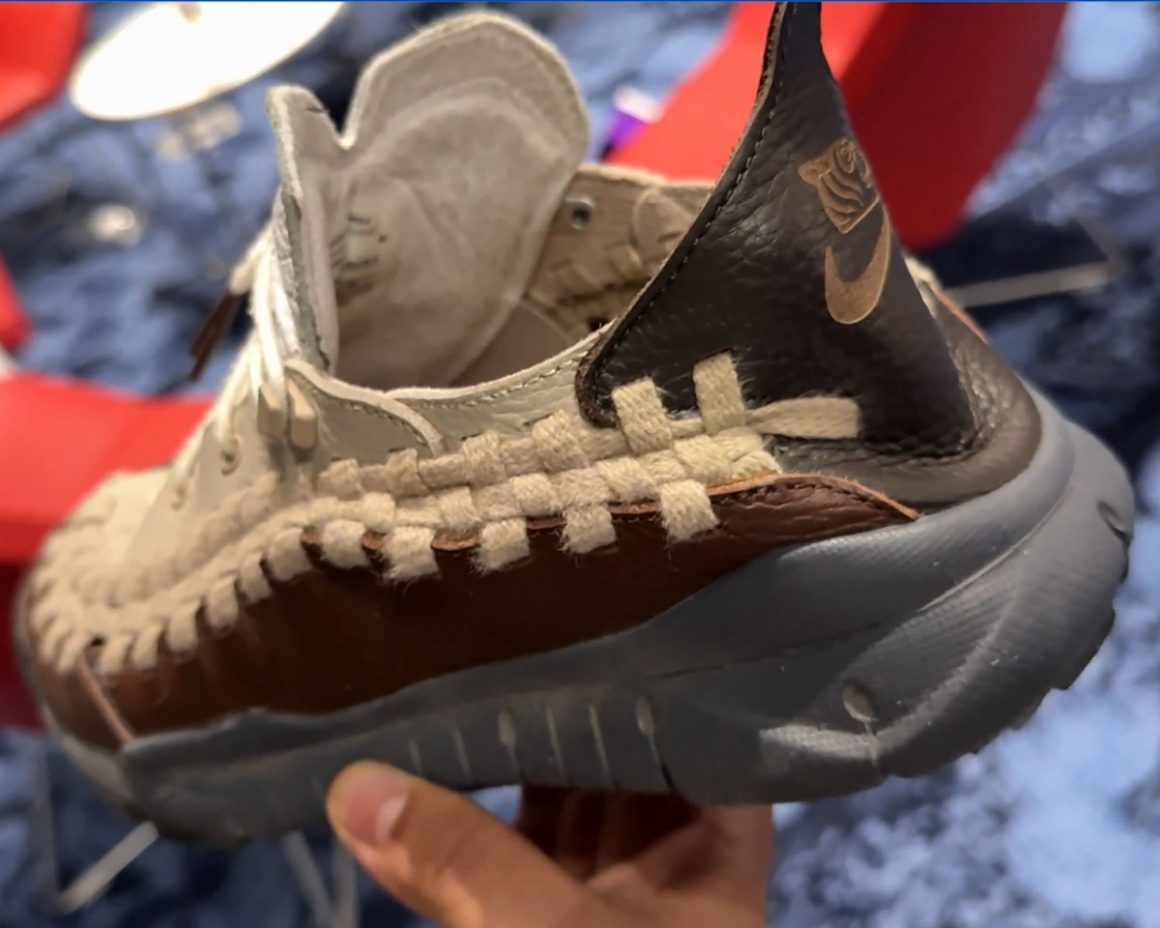 La Soulgoods x Nike Homescape Woven repose sur une structure unique. D’un côté, le profil fait référence à la tradition Nike Footscape et aux modèles tissés qui ont marqué les années 2000. De l’autre, l’empreinte technique se manifeste par une semelle inspirée de la Nike SFB Boot : robuste, crantée, conçue pour résister et durer. La tige, quant à elle, adopte un tissage aux mailles larges, combiné à des panneaux en cuir premium et à des surpiqûres apparentes. Le talon se veut modulaire, le laçage évoque celui d’une bottine outdoor, mais l’ensemble garde une silhouette sneaker. Les détails Soulgoods font leur apparition subtilement : un patch au talon combinant le tigre emblématique du label et le Swoosh de Nike, des coutures surdimensionnées qui donnent une sensation artisanale, et un choix de matériaux qui rappelle autant l’héritage skate que celui de l’équipement outdoor. Le résultat : une chaussure qui semble née pour marcher en ville avec la même assurance que sur un sentier de forêt.