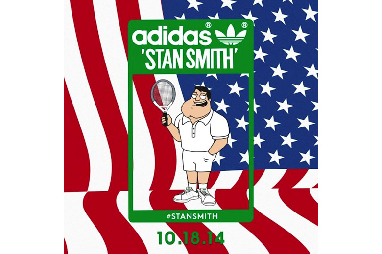 Le mois dernier, adidas Originals avait fait circuler une image teaser montrant le logo de l’adidas Stan Smith avec au centre le personnage phare de la série American Dad!, le père de famille Stan Smith. La marque aux trois bandes confirme officiellement la sortie de la collaboration avec Seth McFarlane, créateur de la série. On découvre des images de la paire en question joliment mise en scène avec les personnages du dessin animé sur un terrain de tennis. L’adidas Stan Smith x American Dad! sortira comme prévu le 18 octobre 2014 uniquement dans les boutiques adidas et sur leur site web (pour l’instant aux USA, nous n’avons pas d’informations pour la France). On vous laisse découvrir cette sneaker à la languette et semelle intérieure customisées grâce aux images qui suivent. Vous remarquerez que ça n’est pas le légendaire joueur de tennis qui apparait sur la languette.