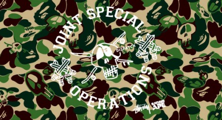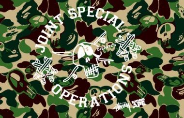 Stussy et Bape collaborent à nouveau pour l’hiver 2010. Plein de jolies pièces sont prévues dont certaines utilisent un nouveau camouflage mixant l’univers des deux marques. Un blouson MA-1, un cardigan, des tee-shirts, des hoodies, des jeans et des chemises sortiront début décembre. La petite nouveauté est également la présence de deux paires de sneakers, type All Star, en camouflage.