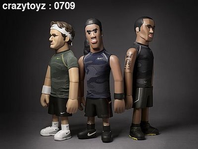 Nous vous avions parlé la semaine dernière de nouvelles figurines créees par le designer Michael Lau pour la firme NIKE. Voici enfin des photos définitives de ces modèles de 20 pouces (51 cms) qui seront uniquement en vente lors d’une enchère pour des oeuvres caritatives à HK. Néanmoins les figurines seront en display dans les différents NIKE store donc peut être à Paris ! (info crazytoyz)