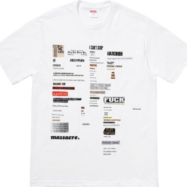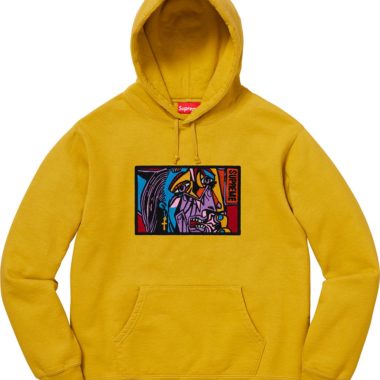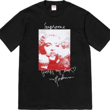 En ce qui concerne la collection Supreme, la marque propose toujours énormément de produits en tout genre. Pour ce qui est de la partie vêtements on retient notamment les vestes et autres hauts réalisés avec la marque Gore-Tex et sa gamme Wind Stopper ou les collections avec Playboy, Schott et Champion qui continuent ainsi que le tee-shirt réalisé avec une photo de la chanteuse Madonna. Les amoureux de la première heure seront heureux d’apprendre le retour du fameux box-logo sur un sweat sans capuche.