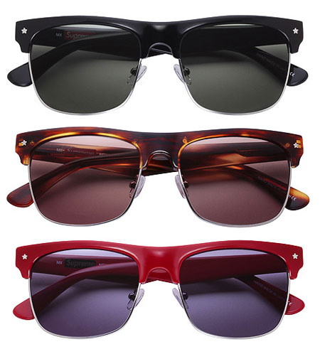 La marque new-yorkaise SUPREME sortira pour ce printemps deux modèles de lunettes de soleil : les Locs et MX. Elles ont été fabriquées main au Japon. Chacun des deux modèles sera disponible en 3 couleur, le 14 mai aux USA et sur leur site web et le 16 mai au Japon.