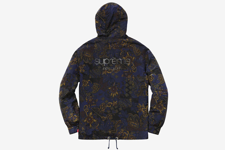 Aucune annonce officielle n’a été faite de la part de Supreme mais on découvre aujourd’hui plusieurs vestes avec un imprimé de style paisley, une série de tee-shirts à manches-longues à rayures ainsi que deux casquettes disposant du même imprimé que les anoraks.