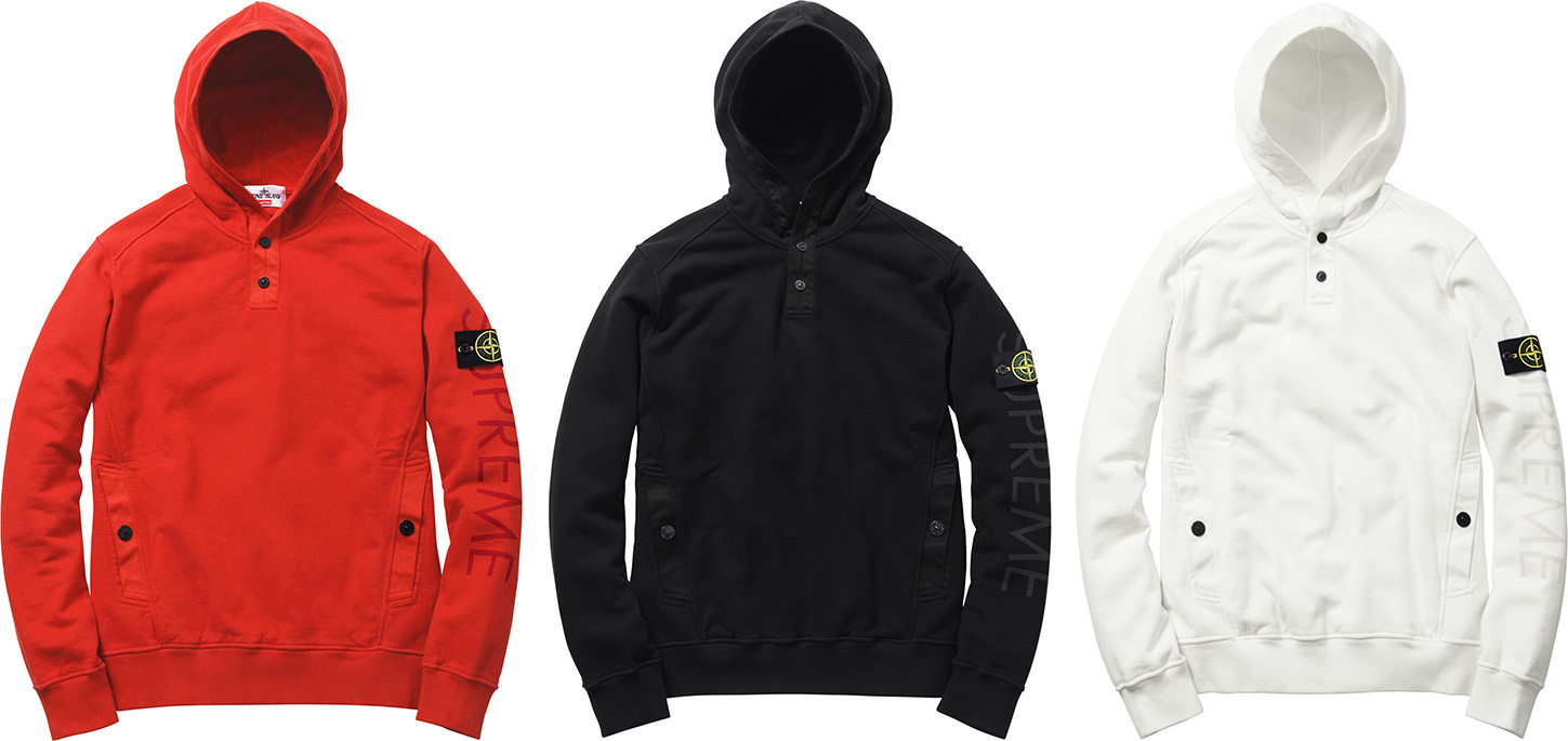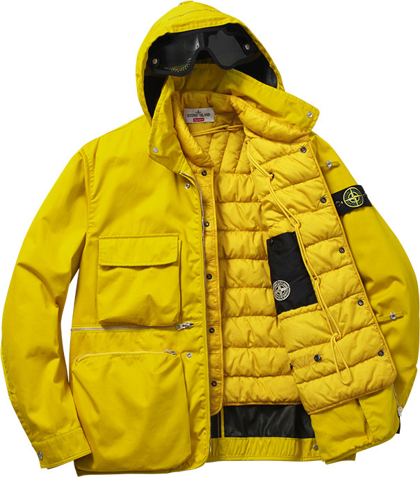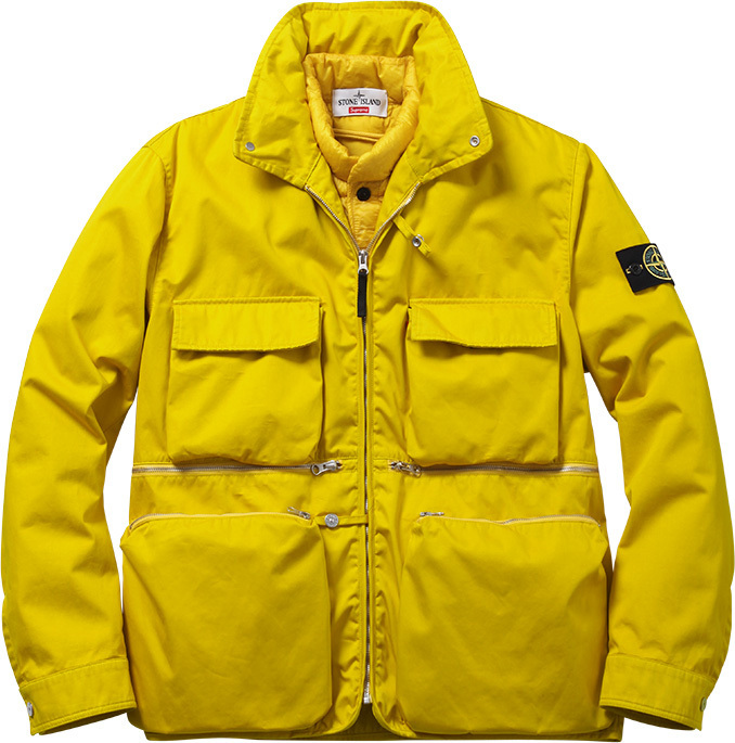Créée en 1982 en Italie, Stone Island est une marque qui a toujours su tenter des expériences sur des matériaux, des coupes en proposant des vêtements à la fois fonctionnels et élégants. Supreme a frappé fort en s’alliant à Stone Island pour proposer une collection de vêtements confectionnés par le label italien. Plusieurs vestes, des sweatshirts et sweatpants ainsi qu’une 5-panel sortiront le 2 octobre dans les shops Supreme (le 4 au Japon) et une sélection de boutiques Stone Island. Concernant les tarifs, ce sont plutôt ceux de Stone Island qui ont été appliqués avec des vestes qui couteront plus de 1000€, 200/300€ pour tout ce qui est sweat. Si vous souhaitez avoir davantage d’infos, chaque pièce est décrite sur le site Supreme avec le prix. Nous vous laissons découvrir l’intégralité de cette collection Supreme x Stone Island dans la suite.