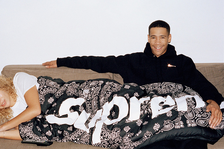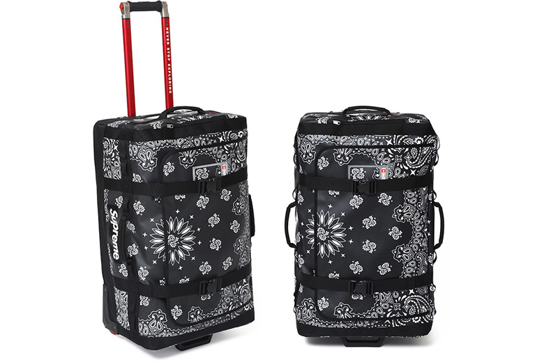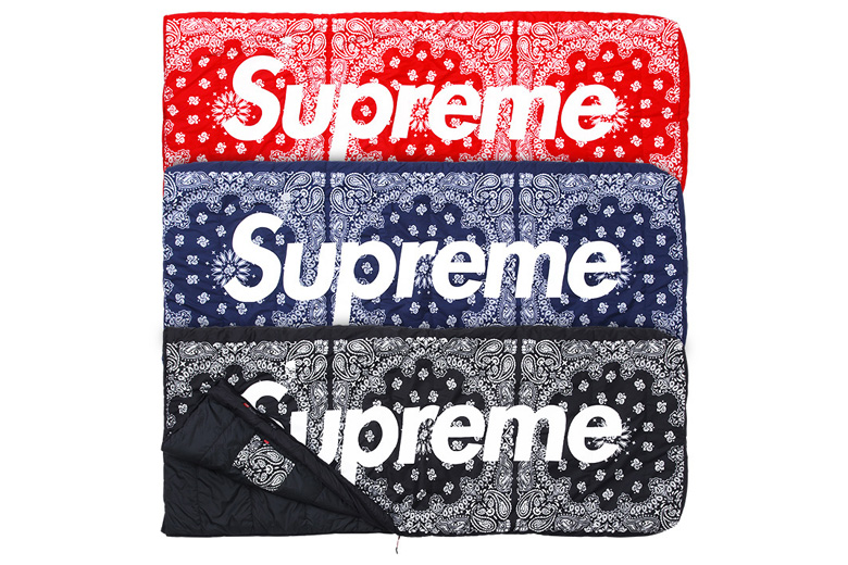 Chaque produit a été réalisé exclusivement pour Supreme. On retrouve sur chacun des articles trois couleurs, noir, bleu et rouge. Un imprimé, qui ressemble à un paisley, a été appliqué à chaque fois.
