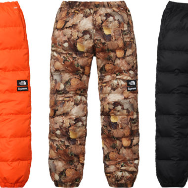Comme à son habitude, ce sont plusieurs articles de la marque outdoor qui ont été revus exclusivement pour le label de skate new-yorkais : Nuptse Jacket, Mountain Light Jacket, Nuptse Pant, Nuptse Bootie, Pocono Backpack, Apex Duffel Bag et Roo II Lumbar Pack. Chaque article est décliné dans deux, voire trois versions : orange, noir et camouflage.