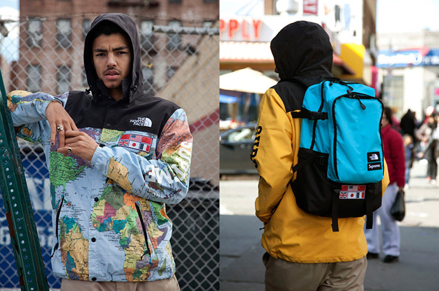 Supreme présente sa collection avec The North Face pour ce printemps. Le modèle Expedition Coach Jacket a été décliné dans quatre versions : un imprimé carte, bleu clair, jaune et noir. Le même type de déclinaison a été appliqué sur un sac à dos, le Expedition Medium Day Pack Backpack. Cette collection Supreme x The North Face sortira le 19 avril 2014.