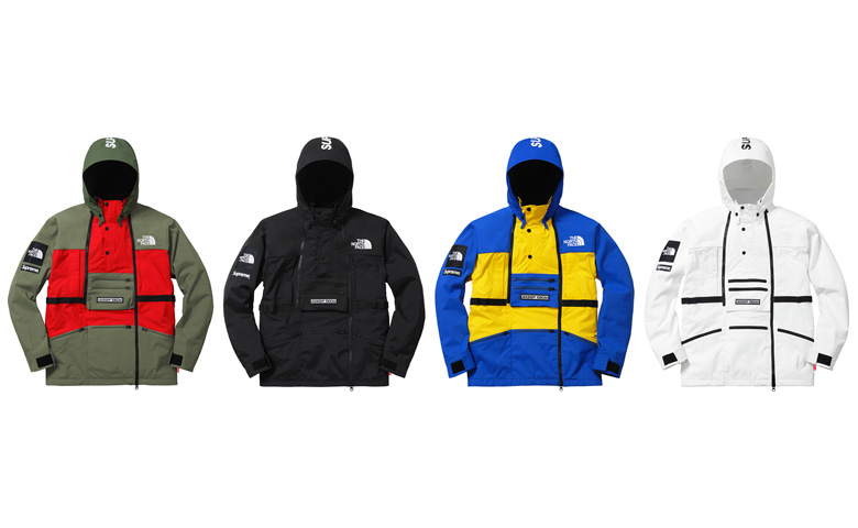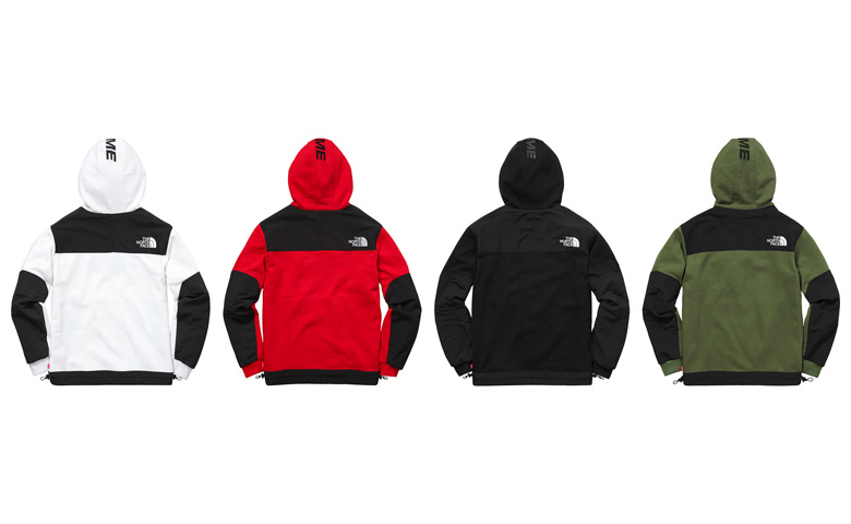 Supreme a une fois de plus choisi des modèles issus des archives de la marque de vêtements techniques. Le focus pour la saison Spring 2016 est la gamme Steep Tech imaginée en 1991 pour le free-rider Scot Schmidt qui avait besoin à l’époque de plus de fonctionnalités pour ses vêtements de ski. C’est toute une panoplie qui a été imaginée par Supreme avec des vestes, des hoodies, des sweatpants ainsi que des sacs à dos déclinés à chaque fois dans quatre coloris différents.