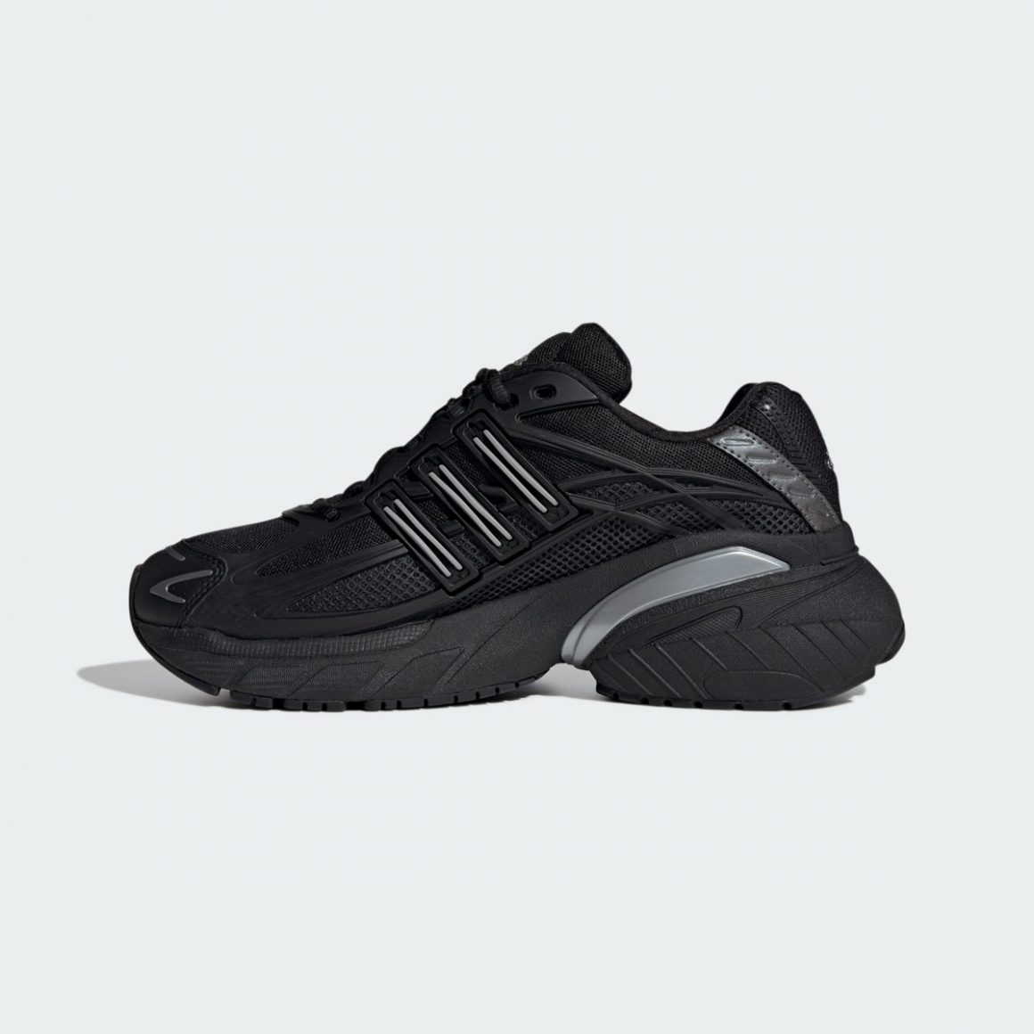 La adidas Adistar XLG 2.0 White/Orangedonne la vedette à une base blanche immaculée, contrastée par des touches orange vif sur l’exosquelette en TPU. Cette base est également contrastée par des touches noires, comme sur les trois bandes latérales en TPU ou encore sur les lacets et le sockliner. L’imposante semelle intermédiaire immaculée repose sur une semelle extérieure noire, et finalise un design parfaitement dans l’air du temps. La adidas Adistar XLG 2.0 Black/Silver, quant à elle opte pour un parti pris plus urbain : une tige majoritairement noire faite de matériaux techniques durables, agrémentée de touches argentées sur les logos, les trois bandes latérales et les détails de semelle intermédiaire. Cette dernière est majoritairement noire, créant une silhouette monochrome et équilibrant le côté chunky de la paire.