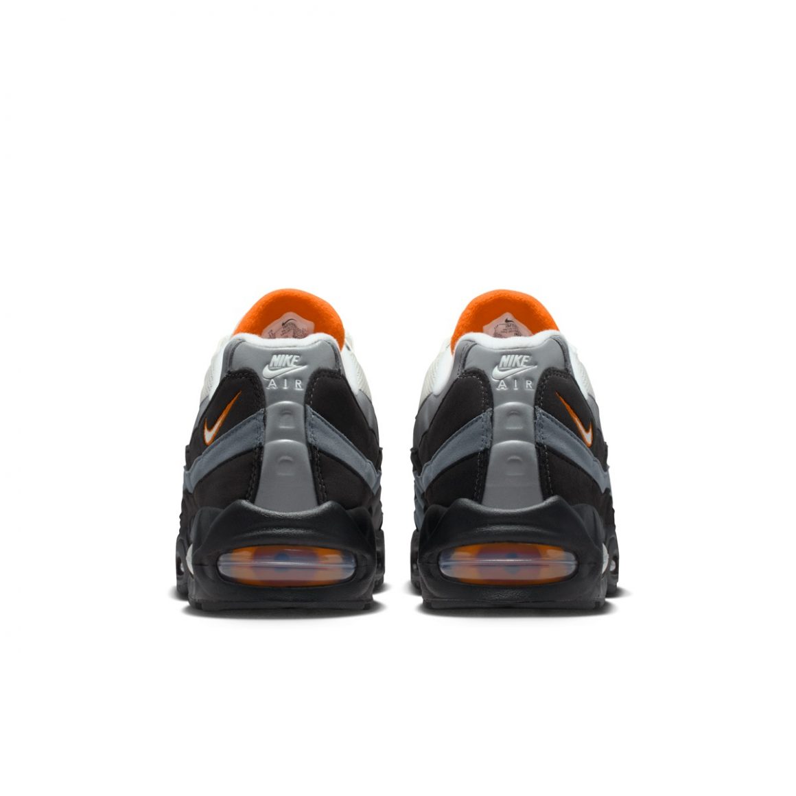 Lorsqu’elle est apparue en 1995, la Nike Air Max 95 a bouleversé les codes. Inspirée par l’anatomie humaine, avec une semelle représentant la colonne vertébrale, des couches latérales évoquant les muscles et un mesh figurant la peau, elle marquait un tournant audacieux pour Nike. La Nike Air Max 95 Bright Ceramic reprend cette architecture emblématique, tout en lui insufflant un souffle contemporain. La tige mêle différentes nuances de gris et de noir, organisées en dégradé horizontal caractéristique, créant un jeu d’ombres et de lumière qui accentue les volumes de la chaussure. Ce fond sobre met en valeur les accents Bright Ceramic, un orange brûlé éclatant qui vient électriser les détails clés : le liseré du mini Swoosh, ainsi que le logo Air Max sur la languette et les unités d’air visibles sous la semelle. Ce contraste confère à la paire une identité forte, entre élégance urbaine et agressivité mesurée. Le mesh respirant du dessus de la tige assure confort et maintien, tandis que les empiècements en cuir suédé ajoutent une texture riche et durable. Fidèle à son ADN running, cette Air Max 95 conserve sa semelle intermédiaire qui se pare de noir et ses bulles d’air apparentes à l’avant et à l’arrière, symbole d’amorti et d’innovation technique.