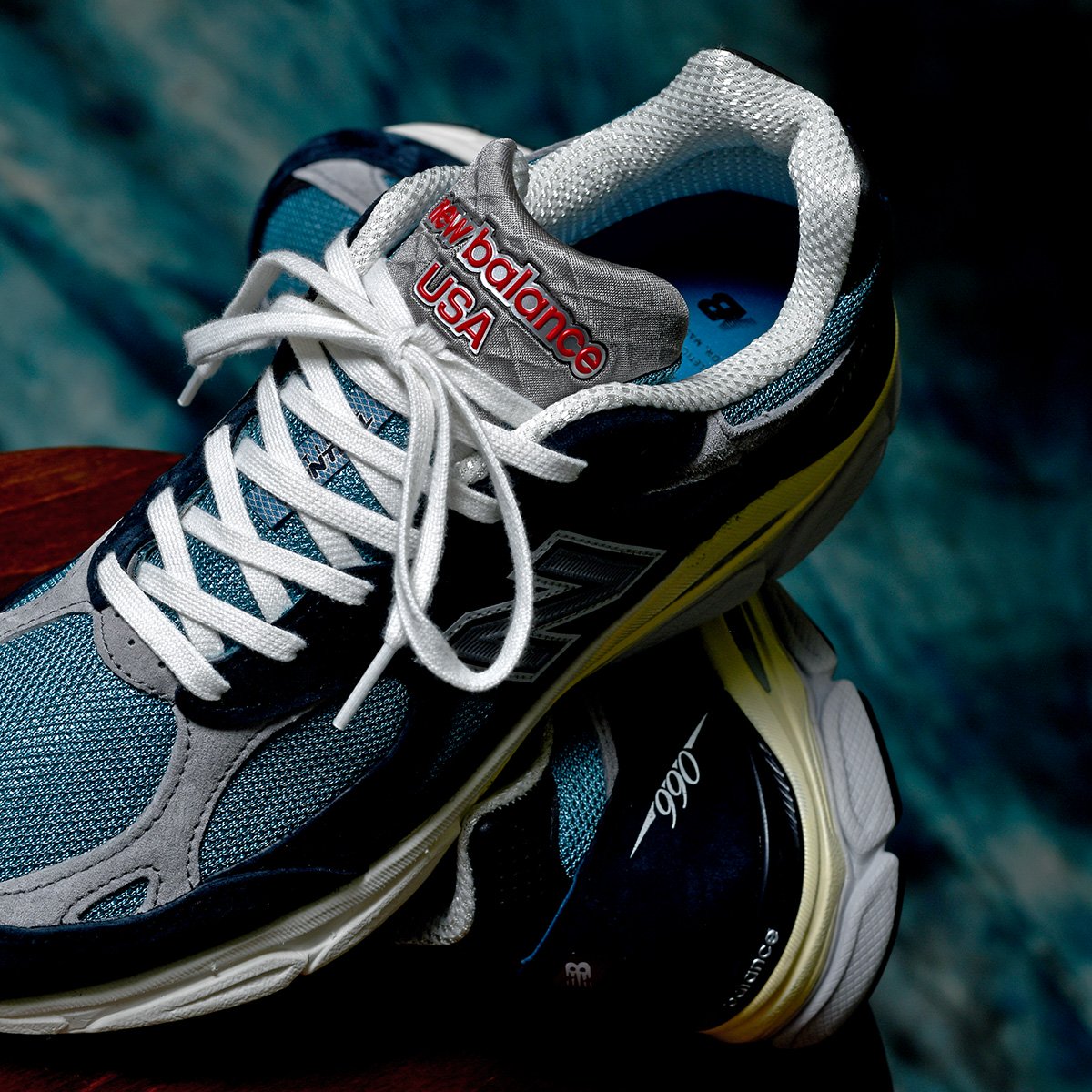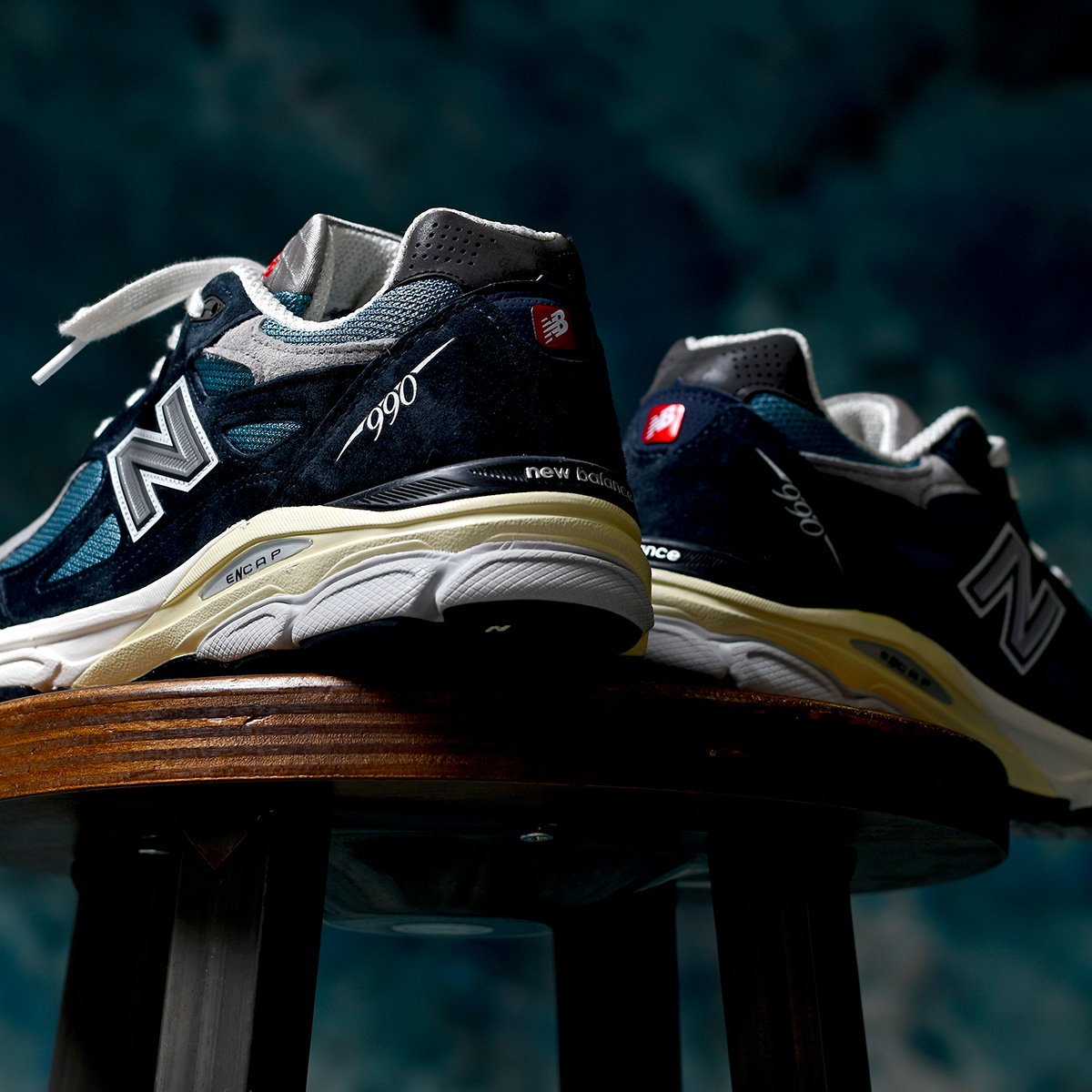 Cette New Balance 990v3 Made in USA Navy est une édition limitée de la marque américaine. Vous pourrez la retrouver sur notre shop en ligne FENOM à partir du 25 août 2022.