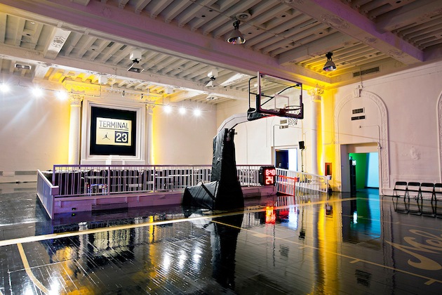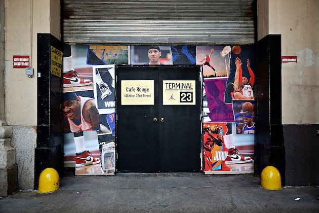 Jordan Brand profite de la position de Carmelo Anthony au sein de la Big Apple pour concocter un terrain nommé « Terminal 23 », en plein coeur de Manhattan, au Café Rouge juste en face du Madison Square Garden. Construit pour honorer les dix ans de partenariat entre le joueur et la marque, les designers de ce terrain l’ont imaginé pour l’ailier des Knicks vu qu’il est noir et or et dispose du logo Melo sur les deux raquettes. Nous ignorons si ce terrain restera de manière permanente mais nous savons qu’il permettra d’organiser différents évènements liés aux sorties de produits ou pour plusieurs rencontres basketball organisées par les joueurs de New York.