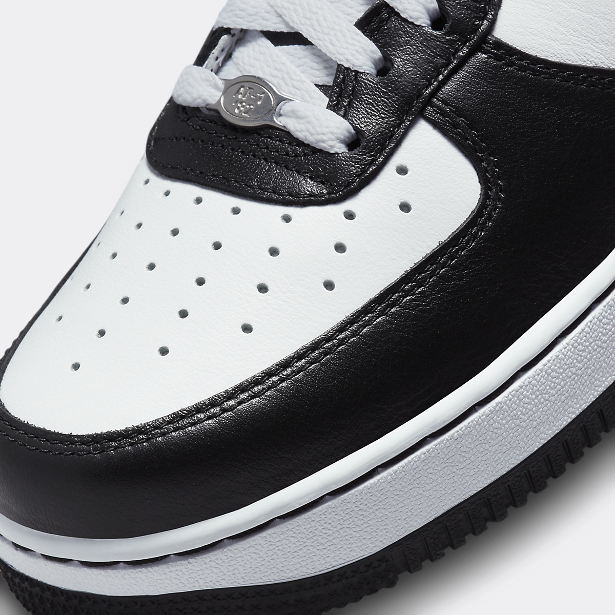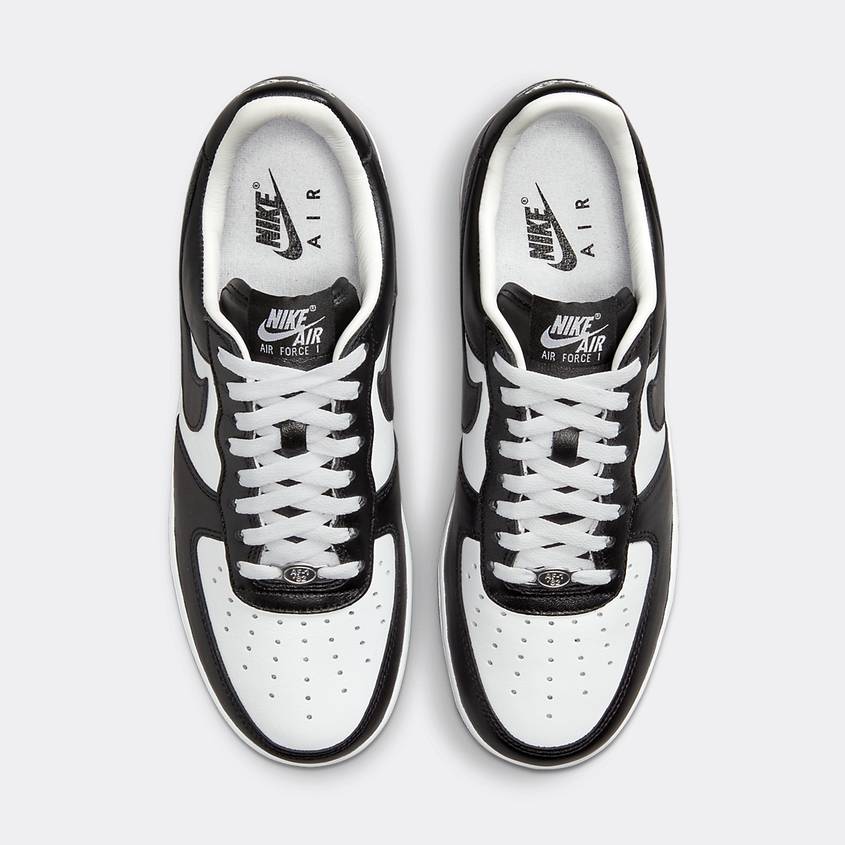 Pour cette première Terror Squad x Nike Air Force 1 Low disponible pour le grand public, la marque au Swoosh a opté pour une construction bicolore. La tige en cuir est blanche sur la toebox perforée et les panneaux latéraux. Ce blanc se marie à celui du sockliner et des lacets plats, qui sont portés par une languette en cuir noir. Elle est surmontée d’une étiquette au logo Nike Air blanc, et sa base est sertie d’un deubré argenté. Le reste de l’empeigne est renforcé par des empiècements en cuir noir, que l’on retrouve sur les gardes-boues avant et arrière, les passages de lacets et le heeltab. Il est brodé des initiales JC, pour Joey Crack, surnom de Fat Joe. Pour marquer la collaboration avec le label new-yorkais, le quart arrière de la paire est brodé du logo TS du Terror Squad en blanc. La paire repose sur une semelle intermédiaire immaculée et une semelle extérieure noire.
