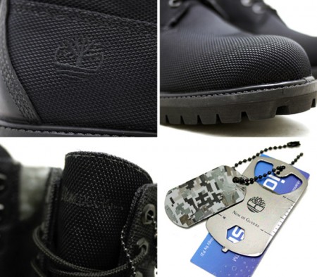 La marque new-yorkaise Nom de Guerre sort une paire de Timberland Boots en nylon ballistic. La paire très sobre est finie avec un camouflage qui confirme l’inspiration militaire du produit qui est livré avec une « dog tag », plaque d’identité militaire.