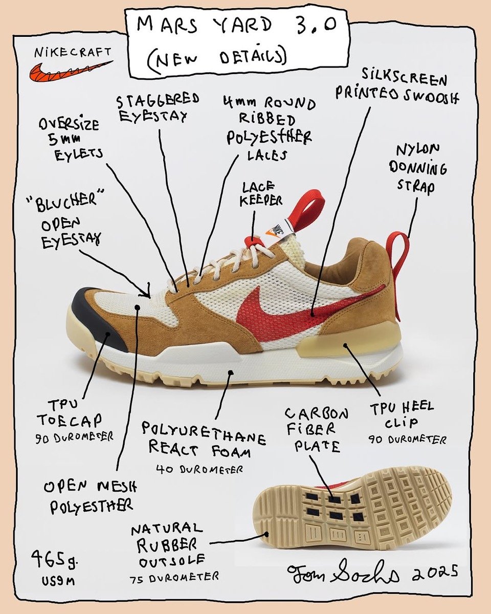 La Mars Yard originale, lancée en 2012, s’inspirait des matériaux utilisés dans l’aérospatiale, reflétant l’obsession de Sachs pour l’exploration spatiale. Ce modèle a rapidement acquis un statut culte parmi les collectionneurs et les passionnés de sneakers. La version 2.0, sortie en 2017, apportait des améliorations en termes de durabilité et de confort, consolidant davantage la réputation de cette collaboration. Avec la Mars Yard 3.0, Tom Sachs et Nike poursuivent cette quête d’innovation en intégrant des mises à jour techniques et esthétiques significatives.