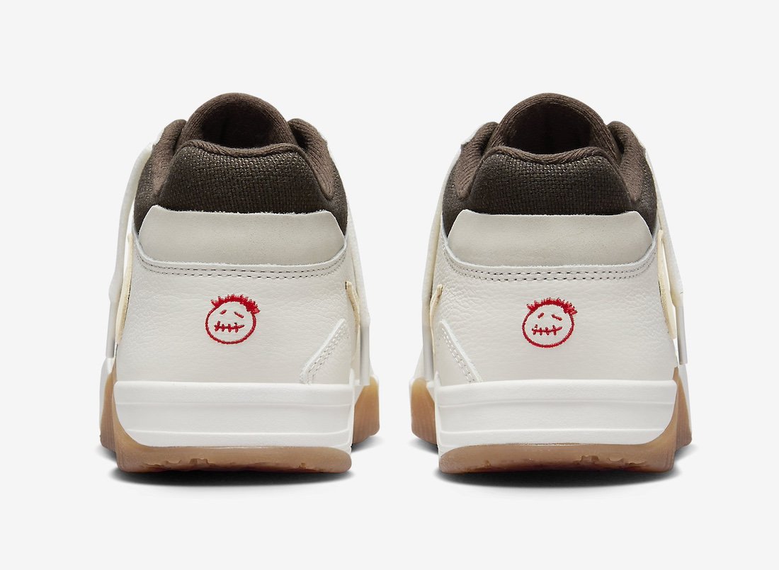 La future Jordan Jumpman Jack Trainer Sail a déjà été aperçue aux pieds de Travis Scott lors d’apparitions en public. Sa silhouette semi-montante rappelle les silhouettes Cross Trainer, chères au rappeur de Houston. Sa tige est construite en canvas marron, visible sur la toebox, le col de cheville et les panneaux latéraux. L’empeigne est renforcée par des empiècements en cuir blanc cassé, qui habillent les gardes-boues avant et arrière, ainsi que les passages de lacets. La base de la languette marron porte un strap, typique des Cross Trainer. Il est brodé d’un logo Cactus Jack, tandis que le sommet de la languette est brodée d’un Jumpman rouge. Le talon porte un logo Cactus Jack rouge, signant la touche de l’artiste texan. Les panneaux latéraux sont ornés de Swoosh crème inversés, à l’instar de nombreuses paires revisitées par Travis Scott. La semelle intermédiaire est en gomme naturelle, et la semelle extérieure porte une imposante inscription Jack marron. La paire est accompagnée d’une special box marron, d’un dust bag assorti, ainsi que de trois paires de lacets.
