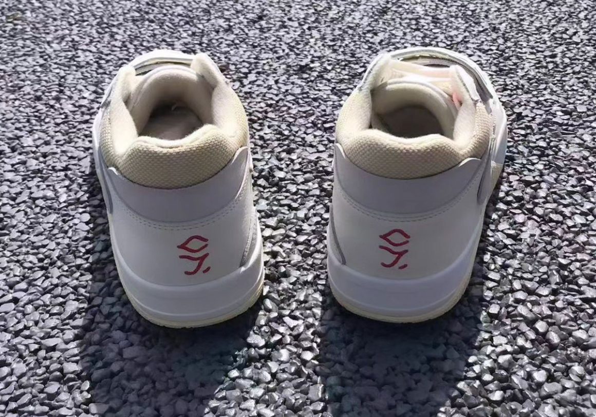 La future Travis Scott x Jordan Jumpman Jack White Cream affiche une silhouette semi-montante inspirée de designs Nike tennis ou cross-training des années 80. Sa base en mesh crème habille la toebox, le col de cheville et les panneaux latéraux. Ces derniers portent un Swoosh inversé en cuir lisse blanc. Il se marie au cuir utilisé en renfort sur les gardes-boues avant et arrière, ainsi que sur les passages de lacets. Le sommet de la languette en mesh est brodé d’un Jumpman rouge, tandis que sa base porte un strap immaculé, brodé d’un logo Cactus Jack en ton sur ton. Nouveauté sur cette déclinaison, le talon est brodé d’un hiéroglyphe rouge, symbole inédit sur les sneakers Travis Scott jusqu’alors. La paire repose sur une semelle intermédiaire crème striée verticalement. Une semelle extérieure crème, avec une imposante inscription Jack rouge, finalise ce nouveau coloris imaginé par le rappeur de Houston.