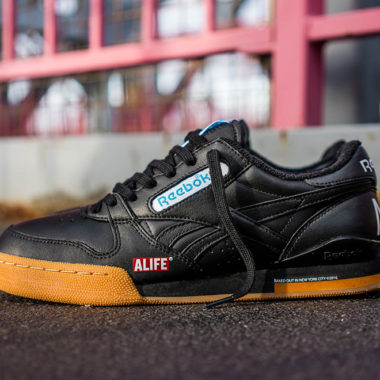 Pour le printemps 2017, c’est la Reebok Phase Pro 1 qui a été déclinée de la même façon sur trois paires. On retrouve tout d’abord un cuir bien épais monochrome qui a été associé avec une semelle extérieure gum. Toutes les écritures sur les logos Reebok sont en bleu clair. Le logo ALIFE est imprimé sur le côté de chaque sneaker. Les lettres NY (pour New york) ont été imprimées au talon. Enfin on retrouve à chaque fois au niveau du talon l’inscription « Baked out in New York City ©2016 ». On a droit à trois versions de ces sneakers : blanc, gris ou noir.