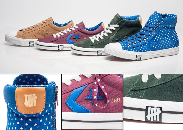 Undefeated dévoile ses nouvelles sneakers réalisées avec Converse pour leur collection « Born Not Made » de la saison printemps/été 2013. Comme l’hiver dernier, ce sont quatre paires (deux à tige haute et deux à tige basse) qui ont été imaginées. Chacune de ces Converse Undefeated dispose d’un imprimé avec des étoiles. Découvrez en détails cette collection Undefeated Converse Born Not Made dans la suite de cet article.