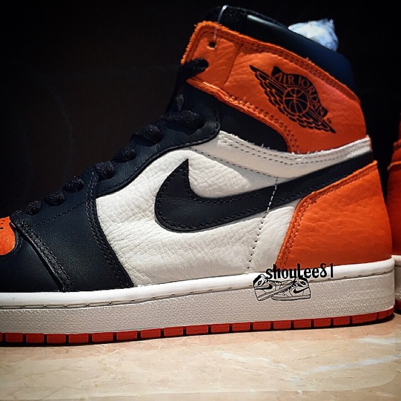 Il semblerait qu’une future Air Jordan 1 vienne rendre hommage à cet événement. La paire est en effet aux couleurs du maillot porté par Michael Jordan lors de la rencontre. L’empeigne est réalisée dans un beau cuir dans trois différentes teintes : noir, blanc et orange. La semelle intérieuse arbore un élément graphique qui semble faire référence à ce fameux panneau détruit par MJ. La forme de la Air Jordan 1 laisse penser qu’elle appartient bien au programme Remastered : tige bien haute, cuir premium…