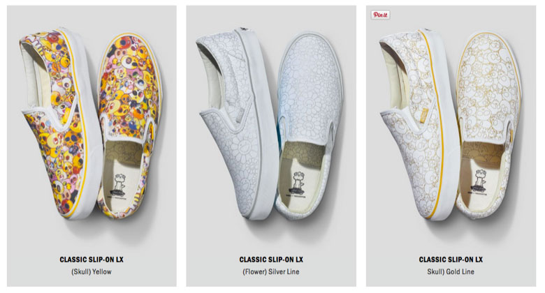 La collection de sneakers réunit six paires de Slip-On avec des motifs déjà connus notamment les fleurs ou encore les têtes de mort. Une série de Vans Slip-On pour enfant sortira aussi. Vous avez la possibilité de découvrir l’intégralité de la collection ci-dessous. La collection Vans Murakami sortira le 27 juin 2015 dans une sélection de shops dont notamment Starcow, Colette et Victoire Barber and Shop pour la France.