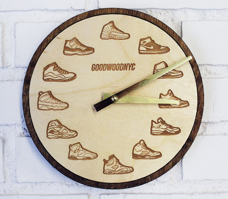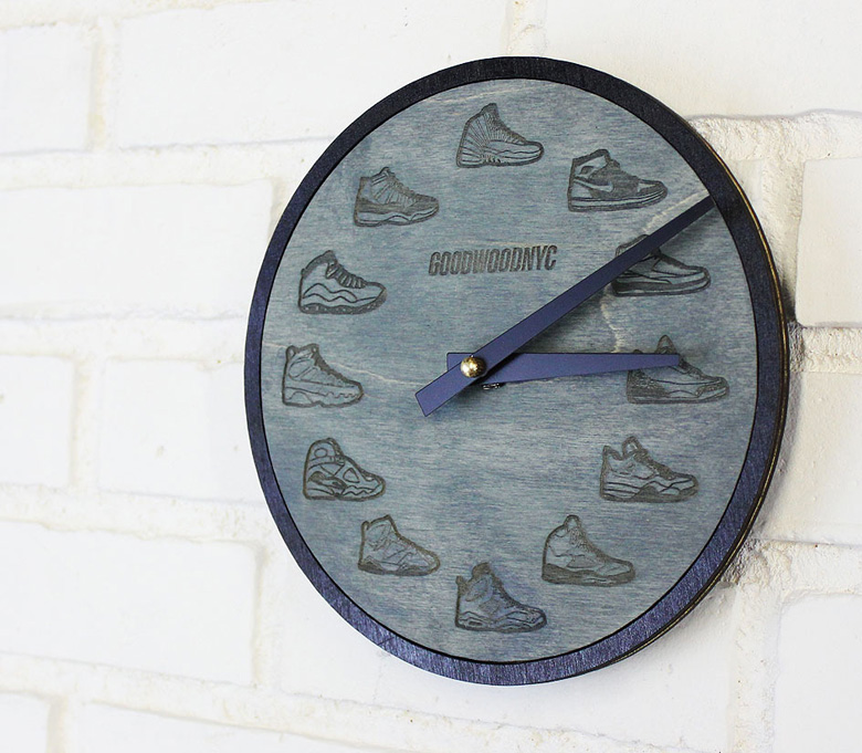 Une pendule avec des Jordan à la place des heures.