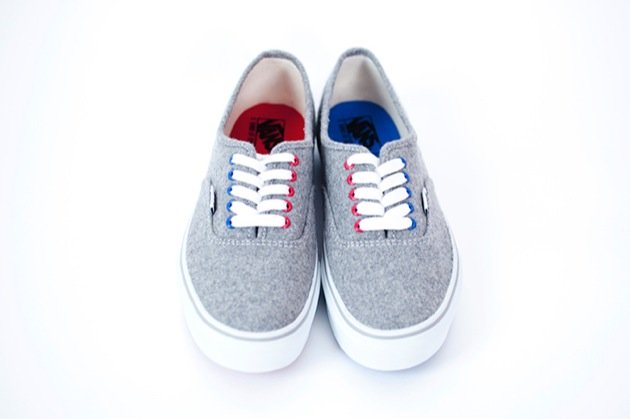La marque américaine Band of Outsiders réalise sa première collaboration sneakers avec Vans. Le modèle colle à l’image de la marque, une réalisation classique avec quelques petites touches originales. La paire est en laine gris clair et ses oeillets, ainsi que ses semelles, sont bleu et rouge. Cette Vans Authentic Band Of Outsiders sortira le 23 novembre chez certains revendeurs et dans leurs propres boutiques.