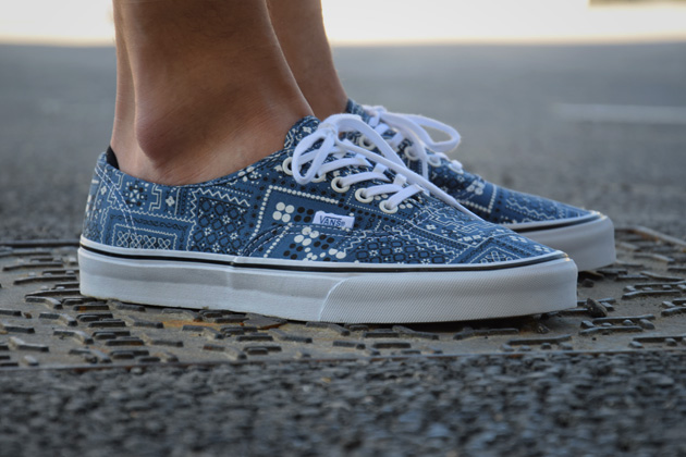 Le motif paisley est de retour pour la collection Summer 2014 de la marque californienne. Décliné en bleu marine, il a été appliqué sur le tout premier modèle de la marque, la Vans Authentic. Cette version appartient à la gamme qui rend hommage aux fondateurs de Vans, la famille Van Doren. Cette Vans Authentic Paisley est proposée en ligne sur notre e-shop.