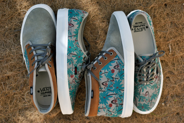 Vans propose un pack de deux paires sur le thème hawaiien. Cette série, qui appartient à la gamme Vans California, utilise le même type de motif, appelé « Hula Camo », imprimé sur une toile beige. Ce sont les modèles Vans Authentic CA et Vans Chukka CA qui sont déclinés avec un joli empiècement en cuir en plus sur la Chukka.. Vous pourrez les découvrir plus en détails dans la suite de cette news.