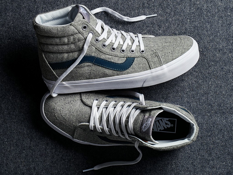Ces deux modèles ont été choisis pour faire partie de ce nouveau pack intitulé « Varsity ». Ce surnom provient en effet des vestes universitaires si populaires aux USA. Celles-ci sont faites de cuir pour les manches et de laine bouillie pour le reste des empiècements. Ce sont les mêmes matériaux que l’on retrouvera sur ces sneakers pour un rendu très élégant. Deux coloris sont déclinés sur ces Vans Era et Vans Sk8-Hi avec un gris/bleu (qui peut rappeler une association de couleurs façon Georgetown Hoyas) et un bleu/rouge.