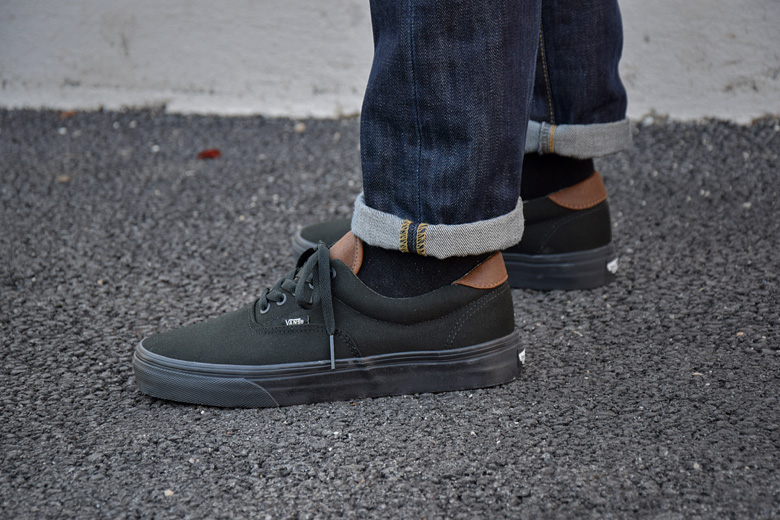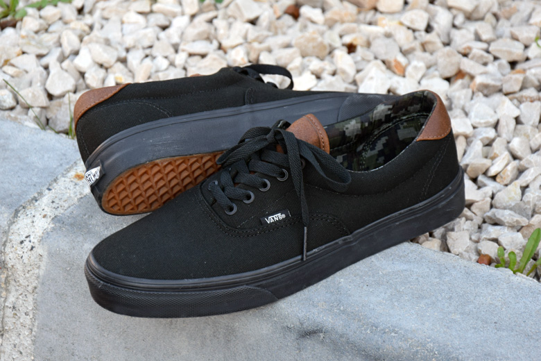 Si vous cherchez une paire de Vans Era peu fragile pour l’hiver, la marque a sorti le modèle idoine. La paire est en toile noire avec des lacets noirs et une semelle noire. Le tout est légèrement contrasté par des empiècements en cuir marron.