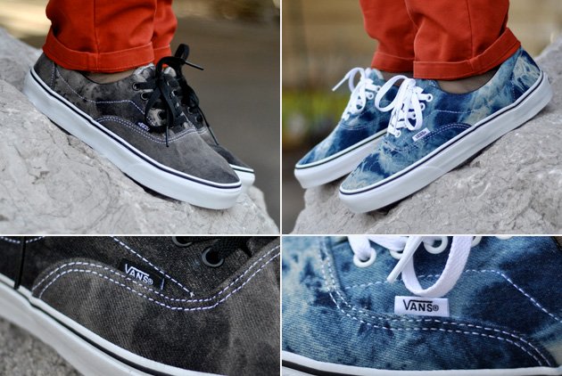 Vans propose de très belles séries pour sa collection printemps/été 2013. Les amateurs de la marque reconnaitront d’ailleurs une inspiration de Supreme sur le coloris bleu de cette Vans Era. Ce pack intitulé Acid Denim est composé de deux Vans Era avec une toile de jean délavée, bleu ou noir.