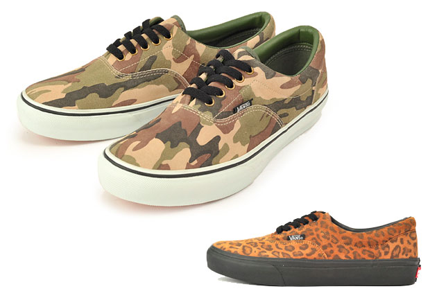 La chaine japonaise ABC MART vient de recevoir deux nouveaux modèles exclusifs de Vans Era. La première est en cuir suédé avec un motif camouflage et la seconde avec un motif leopard.