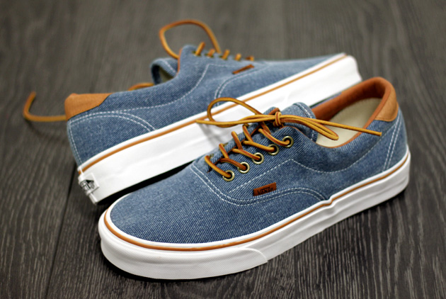 Les paires de la nouvelle collection Vans arrivent au compte goutte. Parmi les nouveautés, on retrouve cette Vans Era en toile de jean (denim) bleu accompagnée de lacets en cuir marron. Une seconde paire de lacets plats de la même couleur sont également fournis. La toile denim qui a été appliqué est assez épaisse avec un joli rendu. Une pièce en nubuck a été apposée au niveau du talon.