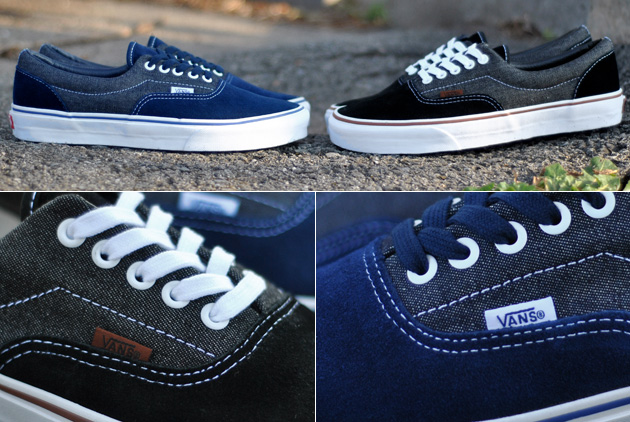 Vans édite un pack de deux paires de Vans Era Denim pour le printemps. Les coloris sont plutôt simples mais bien choisis avec un mix de toile denim (jean) et de cuir suédé. La première paire est bleu marine avec des surpiqures blanches. La seconde est noire avec quelques touches de marron.