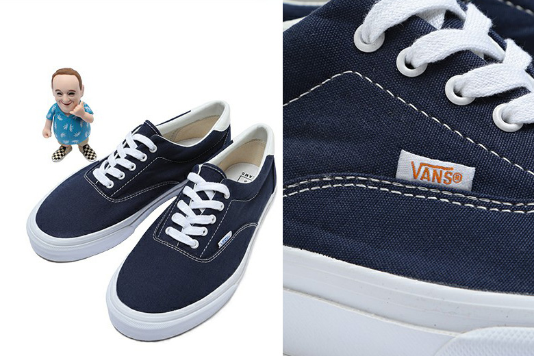 Afin de lier les deux anniversaires, Beams s’apprête à sortir une Vans Era en toile dans son coloris original « navy ». En plus de cela, c’est réellement la forme d’époque avec des détails significatifs comme la semelle sans marquage, les labels, l’intérieur de la paire ainsi qu’une boîte reprenant celle produite au siècle dernier. Pour accompagner cette Vans Era, il semblerait que les Japonais aient eu la bonne idée de produire un toy à l’image de Steve Van Doren, le fils du fondateur de Vans.