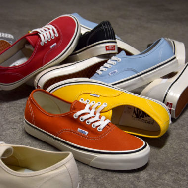Les tiges sont légèrement rehaussées. Chaque semelle extérieure est dans un coloris blanc cassé (dénommé marshmallow) et arbore une légère brillance qui a été générée par le processus de vulcanisation. Les toiles appliquées sur les Vans Authentic et les Vans Old Skool sont un peu plus épaisses que sur les versions traditionnelles avec ici une toile de 283g. On retrouve également certains coloris d’époque avec notamment les éditions Racing Red et Light Grey. Pour avoir des sneakers plus confortables, chaque semelle intérieure est une UltraCush haut de gamme afin de profiter du look des classiques tout en bénéficiant du confort moderne.
