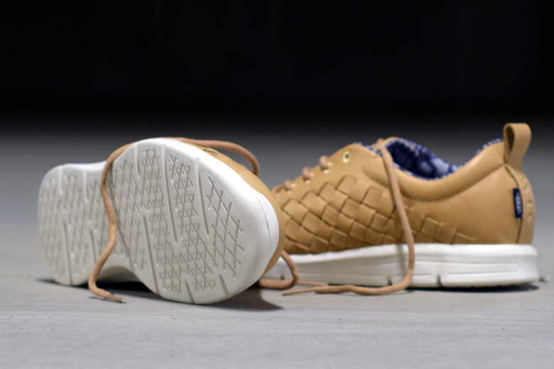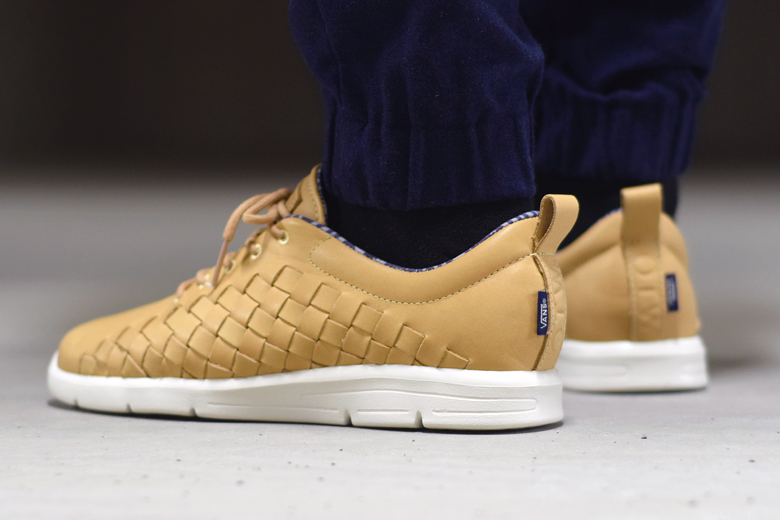 Cette version de la Vans Tesella appartient à la collection Summer 2015 de la marque californienne. La paire est extrêmement sobre avec ce ton crème, parfaitement de saison, qui est présent sur l’intégralité de l’empeigne ainsi que la languette et les lacets. La semelle est toute blanche, sans marquage. L’intérieur arbore des motifs dans un mix de couleurs bleu et gris. Le petit label Vans au talon est bleu marine.