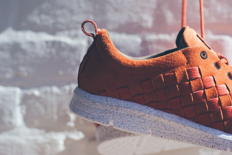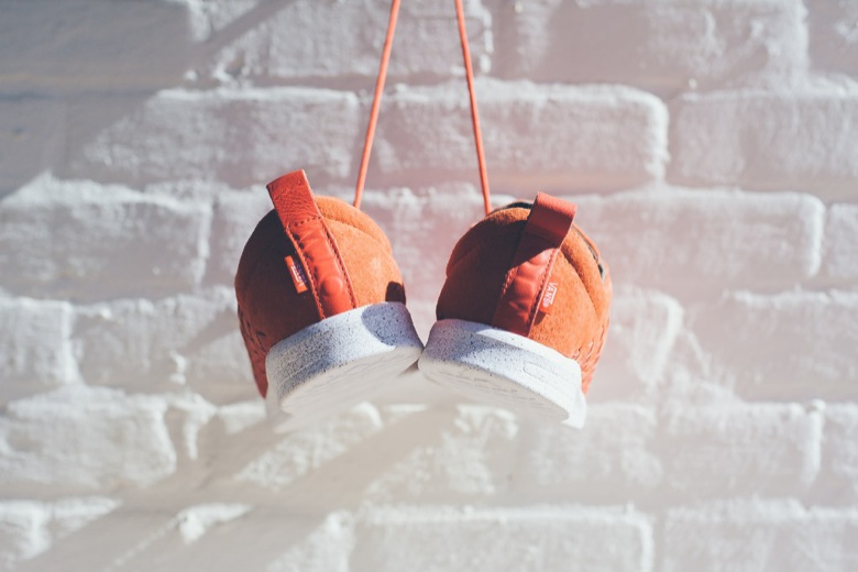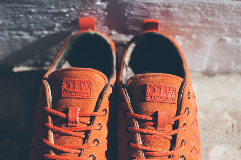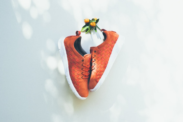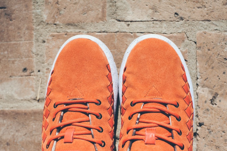 La paire mixe deux types de cuir. Un suédé a été appliqué sur presque l’intégralité du chausson. C’est la partie tressée qui a été réalisée dans un cuir lisse. En revanche, les designers n’ont pas fait de compromis sur le choix de la couleur. La paire est monochrome, toute orange. Sa semelle extérieure est, quant à elle, légèrement tachetée.