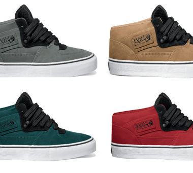 Nous dévoilons petit à petit la collection à venir pour le printemps de la gamme Vault chez Vans. Aujourd’hui nous vous présentons quatre Half Cab qui seront disponibles aux mois de mars et avril. On notera plusieurs petites particularités du modèle : la semelle et le passant de lacets intermédiaire.