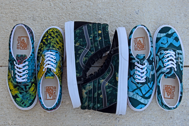 Vans s’est associé à Della, une entreprise « citoyenne » basée à Los Angeles et qui emploie un peu plus d’une cinquantaine de femmes au Ghana. Spécialisée dans la fabrication d’objets faits main et dans la production de textiles, elle aide plusieurs villages en redistribuant une partie de ses bénéfices. Plusieurs paires de sneakers Vans ont été créées pour la saison Printemps 2014 dont deux Vans Era et une SK8-Hi. Le rendu est d’ailleurs assez proche des premières collections Kenzo. Ces Vans x Della sont en vente en ligne sur SNKRS.